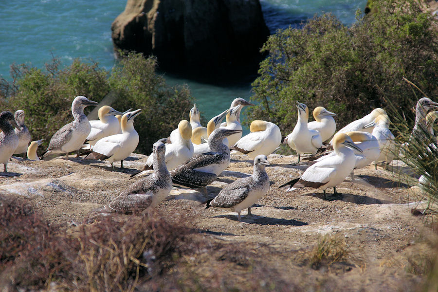 Cape Kidnappers accommodates over 20.000 birds spread over four main nesting sites. The Gannets are present at the
